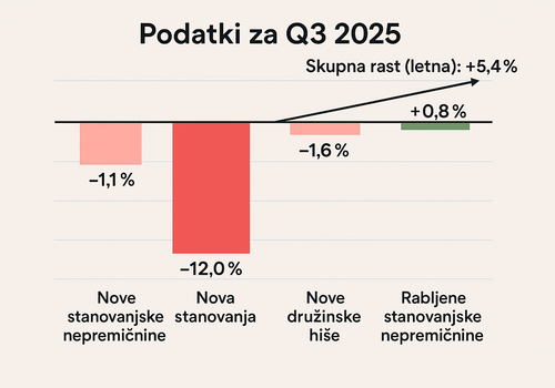 Škarje na trgu nepremičnin: Zakaj s...23.12.2025Podatki potrjujejo "škarje" v cenah: nove nepremičnine so se opazno pocenile, rabljene pa so se kljub visok...VEČ