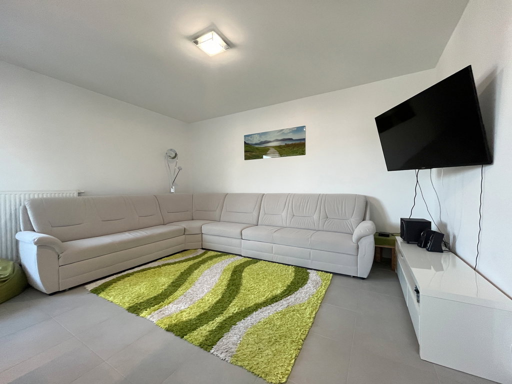Oprema je bila nameščena l. 2015 in zelo malo uporabljena. Stanovanje je po meri opremljeno v smislu, da nudi čim več prenočišč. Že v predsobi sta v omari vgrajeni dve ležišči, v dnevni sobi se nahaja zelo velik kavč, iz katerega se tudi lahko naredi najmanj 2 ležišči. Kuhinja je opremljena z vso belo tehniko.
