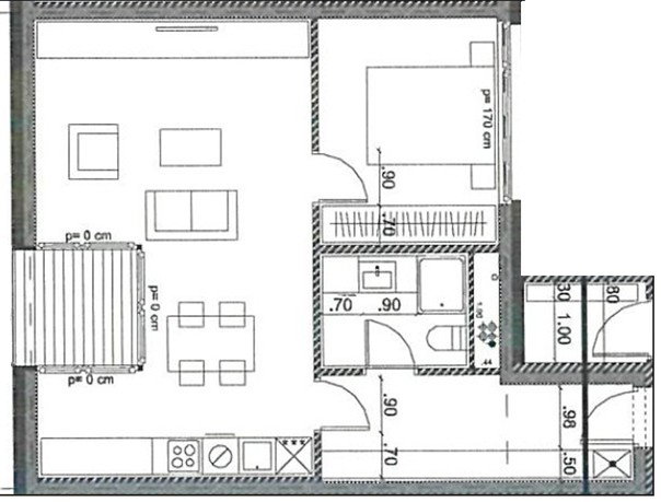 Stanovanje obsega prostoren predprostor, kopalnico, spalnico in enoten dnevni prostor s kuhinjo z izhodom na balkon. Ob stanovanju se nahaja priročna shramba.