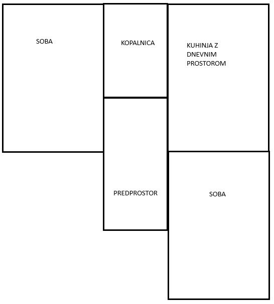 Stanovanje ima uporabno razporeditev. Obsega predprostor, iz katerega se dostopa v obe sobi, kopalnico in dnevni prostor.